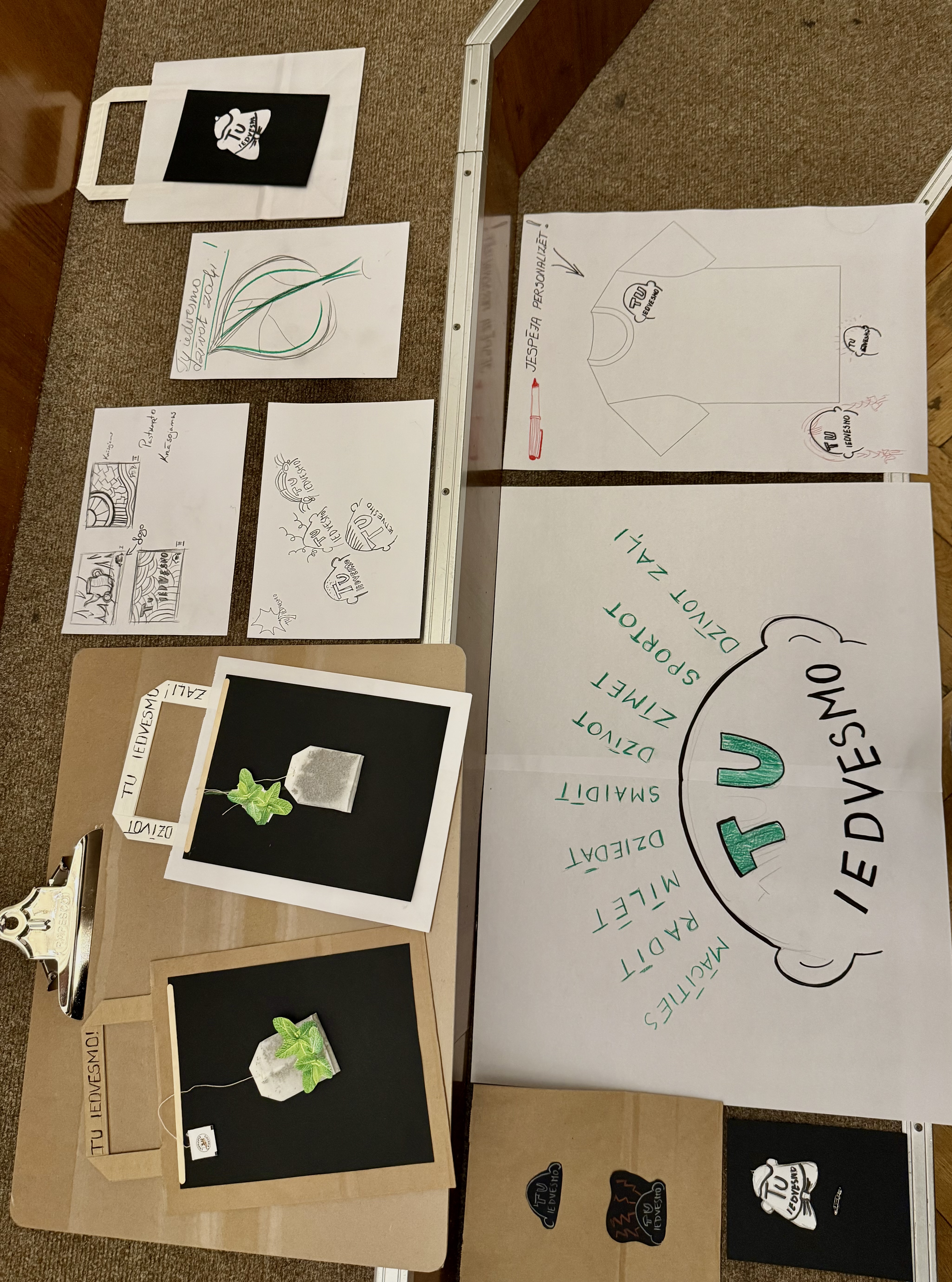 Konkursa tēmu palīdzēja izprast iedvesmojošais Rīgas Dizaina un mākslas vidusskolas pasniedzēju Klāras Grundšteines un Ineses Vēriņas – Lubiņas stāstījums un lieliski sagatavotā prezentācija “Vizuālās prezentācijas materiālu izveide”. Pasākuma dalībniekiem bija iespēja apskatīt gan prezentācijā iekļautos darbus, gan praktiskus piemērus ar vizuālās prezentācijas priekšmetiem – apdrukātus T – kreklus, krūzītes, piespraudes, atklātnītes.