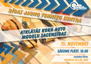 Rīgas Jauno tehniķu centrs organizē un aicina bērnus un jauniešus piedalīties Rīgas Jauno tehniķu centra atklātajās koka auto modeļu sacensībās, kas norisināsies 2025. gada 15. novembrī plkst. 10.00 Rīgas Jauno tehniķu centrā, Bauskas ielā 88.