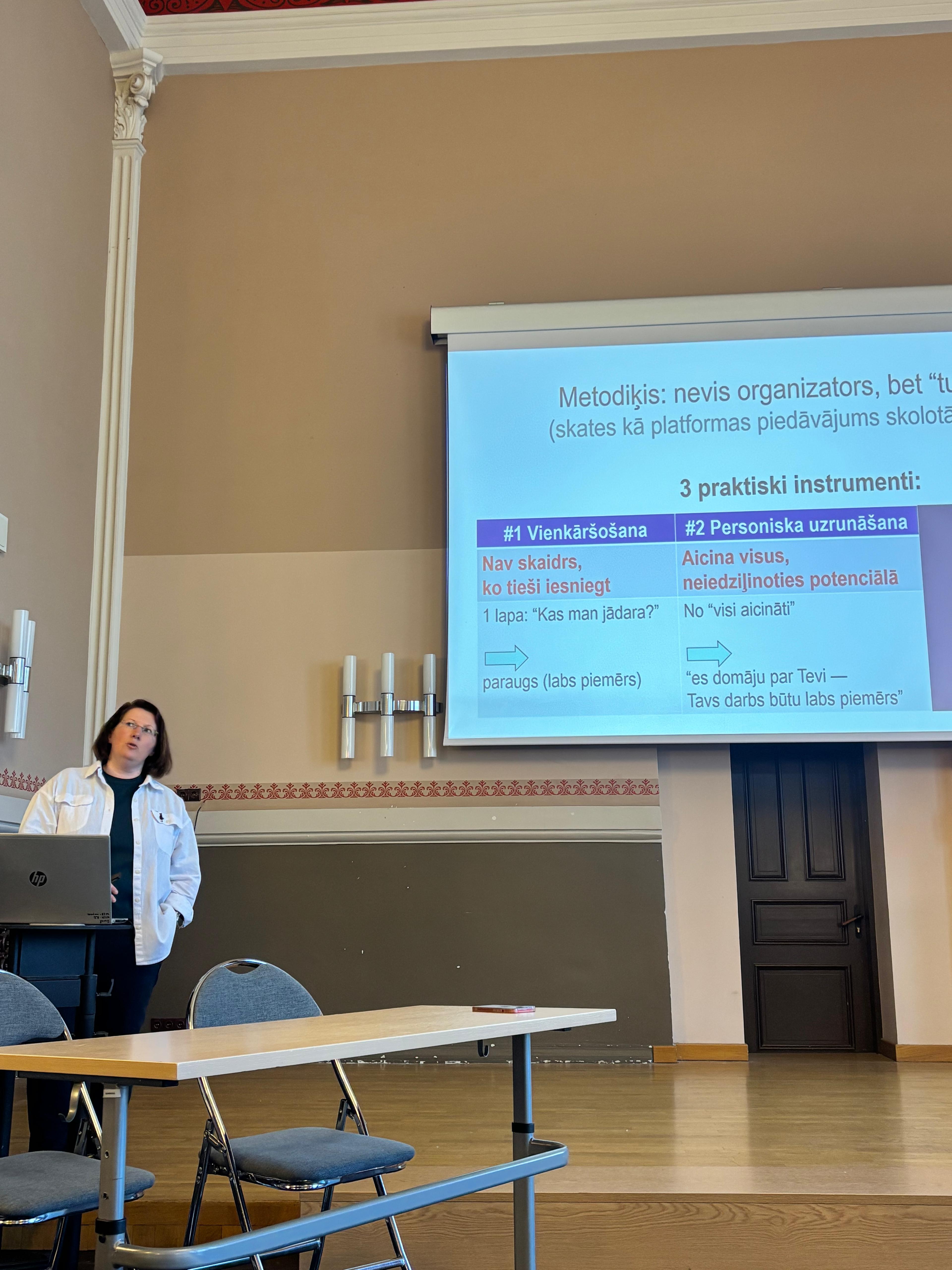 Rīgas Jauno tehniķu centra un Rīgas Tehniskās jaunrades nama “Annas 2” STEM izglītības metodiķes Linda Čūdere, Kristīne Mičule un Evija Vizule atgādināja par aktuālām STEM aktivitātēm un pedagogu profesionālās pilnveides iespējām.