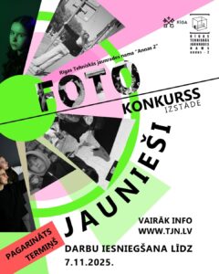 Rīgas Tehniskās jaunrades nams “Annas 2” aicina Rīgas jauniešus vecumā no 12 līdz 25 gadiem vēl līdz 7. novembrim iesniegt fotogrāfiju sērijas fotomākslas konkursā “JAUNIEŠI – foto konkurss – izstāde”.