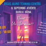 KAS: Atvērto durvju dienas KUR: Rīgas Jauno tehniķu centrā – Bauskas ielā 88 un Ernestīnes ielā 8A KAD: 9.septembrī 15.00-18.00 un 23.septembrī 16.00–19.00 Nāc, izmēģini, radoši darbojies, uzzini visu par pulciņiem, to jaunajiem nodarbību laikiem, tiecies ar pulciņu skolotājiem un, aizpildot iesniegumu,...