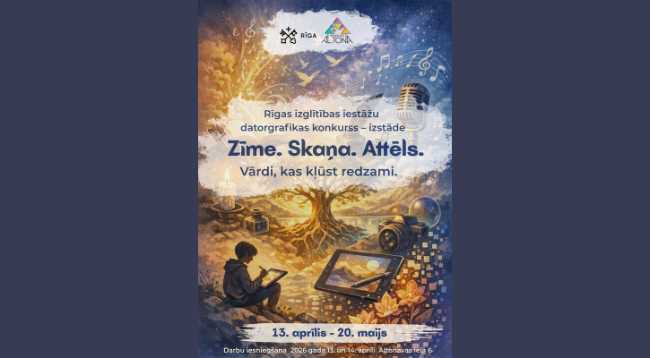 Rīgas bērnu un jauniešu centrs “Altona” sadarbībā ar Rīgas valstspilsētas pašvaldības Izglītības, kultūras un sporta departamenta Sporta un jaunatnes pārvaldi aicina Rīgas izglītības iestāžu audzēkņus piedalīties datorgrafikas konkursā–izstādē “Zīme. Skaņa. Attēls.” Konkurss tiek organizēts kā trīs gadu cikls ar vienotu nosaukumu, katru...