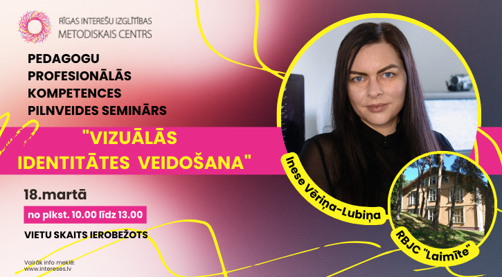 Rīgas Interešu izglītības metodiskais centrs aicina Rīgas pašvaldības izglītības iestāžu interešu izglītības skolotājus pieteikties pedagogu profesionālās kompetences pilnveides semināra “Vizuālās identitātes veidošana” apguvei. Programma norisināsies 2026. gada 18. martā no plkst. 10.00 līdz 13.00, lektore – Inese Vēriņa-Lubiņa. Mūsdienu izglītības vidē pedagogs...