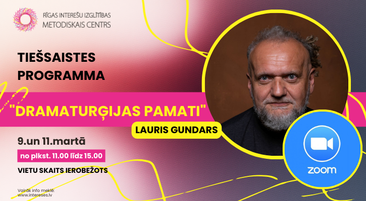 Rīgas Interešu izglītības metodiskais centrs aicina Rīgas pašvaldības izglītības iestāžu interešu izglītības skolotājus pieteikties attālinātai profesionālās kompetences pilnveides programmai “Dramaturģijas pamati” (12 stundas) apguvei. Programma norisināsies tiešsaistē 2026. gada 9. un 11.martā no plkst. 11.00 līdz 15.00, lektors – Lauris Gundars. Programmas...