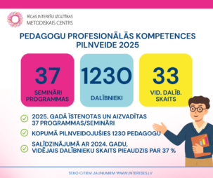 2025. gadā Rīgas Interešu izglītības metodiskā centra pasākumos piedalījušies 20547 dalībnieki, kursus un seminārus apmeklējuši 1230 pedagogi