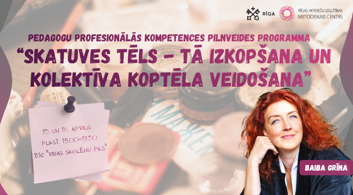 Rīgas Interešu izglītības metodiskais centrs aicina pedagogus pieteikties 12 stundu profesionālās pilnveides programmai par skatuves tēla veidošanu un vizuālo koptēlu mākslinieciskajos kolektīvos. Programmas ietvaros dalībnieki iepazīsies ar skatuves tēla veidošanas principiem, kolektīva vizuālā tēla raksturošanu un analīzi, kā arī veiksmīga priekšnesuma pamatnosacījumiem....