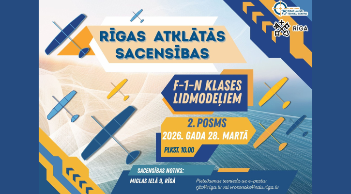 Rīgas Jauno tehniķu centrs ar Rīgas valstpilsētas pašvaldības Izglītības, kultūras un sporta departamenta Sporta un jaunatnes pārvaldes atbalstu aicina piedalīties Rīgas atklāto sacensību F-1-N lidmodeļu klasēm 2. posmā. Sacensības notiks 2026. gada 28. martā, Sporta hallē, Miglas ielā 9, Rīgā un to sākums plkst.10.00. Sacensībās...