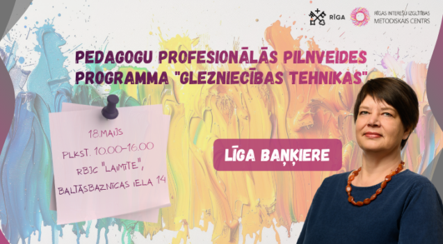 Rīgas Interešu izglītības metodiskais centrs aicina interešu izglītības pedagogus piedalīties profesionālās kompetences pilnveides programmā “Glezniecības tehnikas” (8 stundas), kas norisināsies 2026. gada 18. maijā no plkst. 10.00 līdz 16.00 Rīgas bērnu un jauniešu centrā “Laimīte”, Baltāsbaznīcas ielā 14, Rīgā.