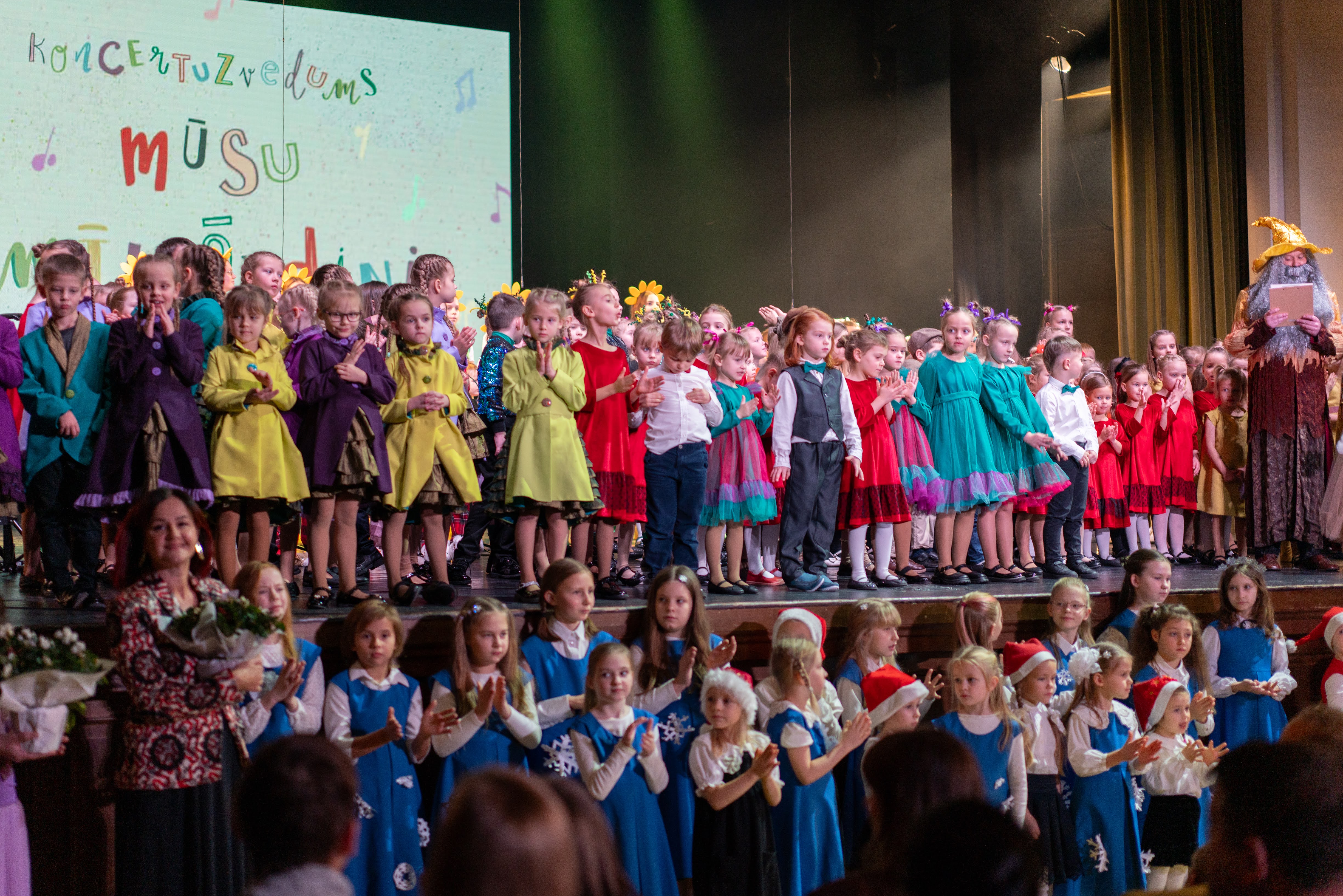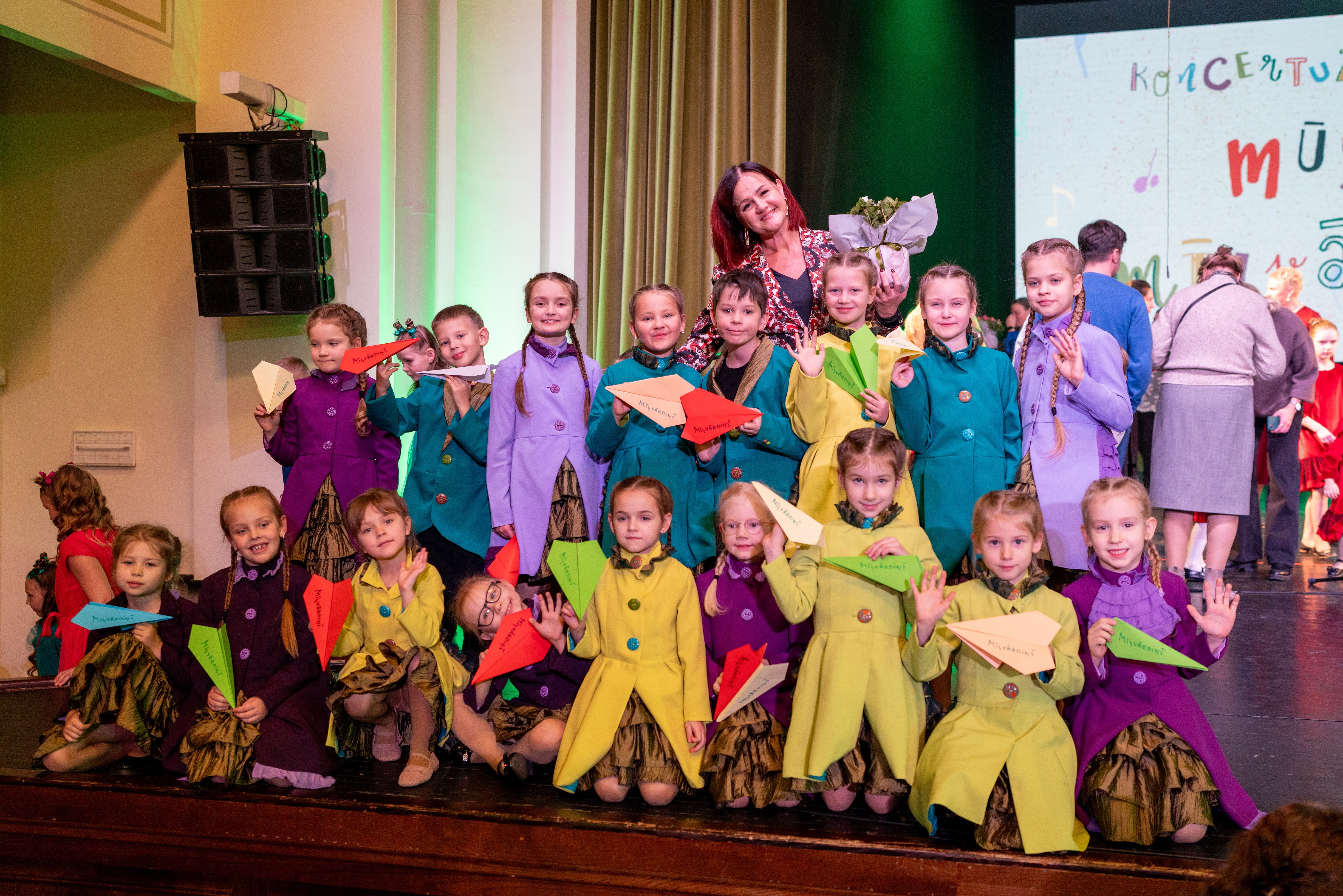 Šogad dziedāšanas svētkos izskanēja koncertuzvedums “Mūsu mīļvārdiņi”, izdziedot Mairitas Bičukas dziesmas bērniem, kurās katrs ansamblis iejutās savā lomā – muzicēja gan rūķi, gan miegamices, pavasari bērni sagaidīja saulesbrillēs vai uz skatuves vienā acumirklī izauga vesela pieneņu pļava! Un to visu paveica mazie dziedātāji un viņu vadītājas – lielākie darba rūķi un brīnumdari!