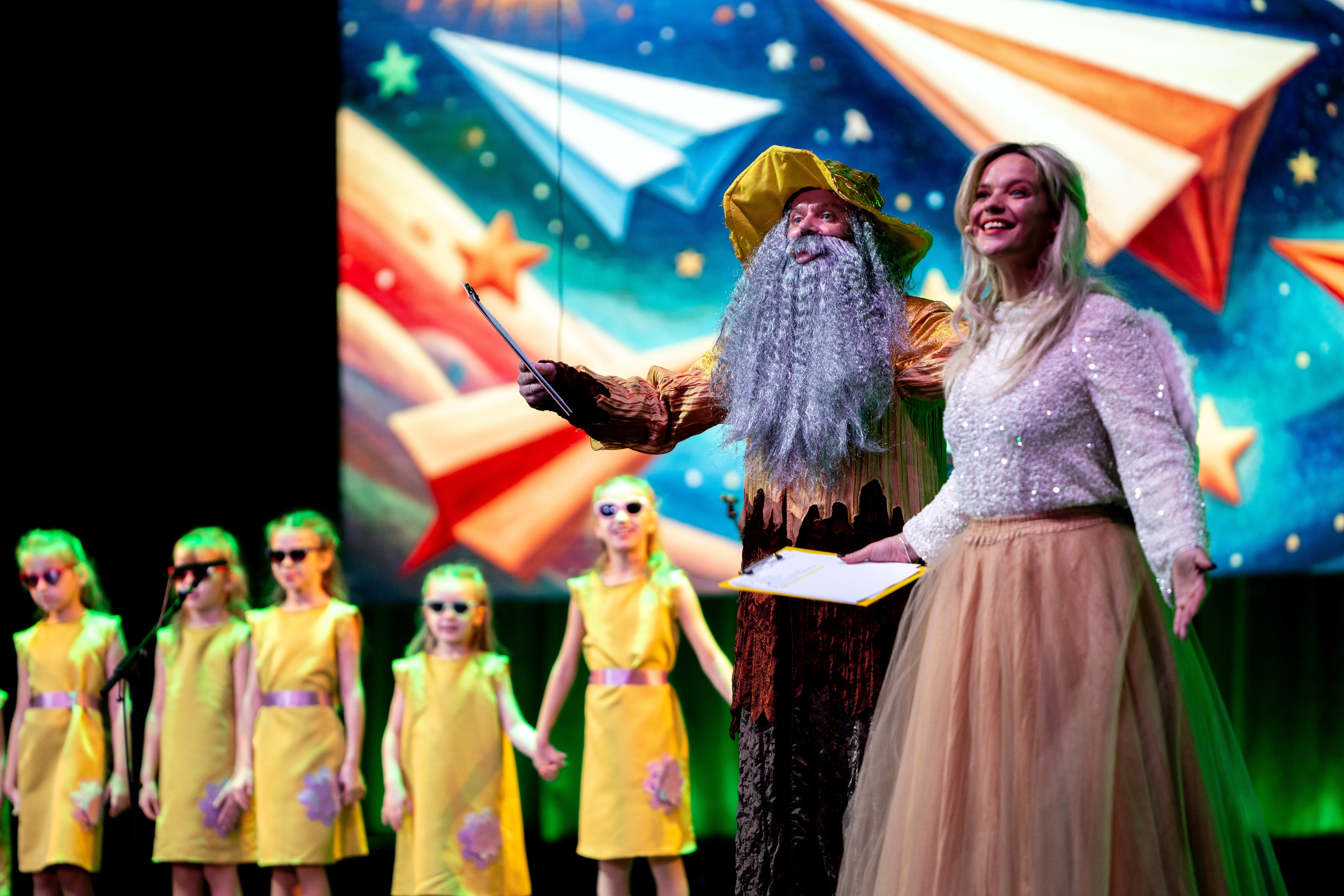 Ceļos un neceļos tiem palīdzēja nokļūt feja Nefeja un burvis Dziediņš! Ar video projekcijām dziesmu pasaulē ieveda Jānis Romanovskis. Pie klavierēm zvaigžņoto debesu jumu vai ziedošu Latviju jebkurā brīdī uzbūra Valdis Zilveris.