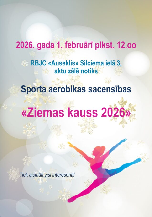 Rīgas bērnu un jauniešu centrā “Auseklis” norisināsies sporta aerobikas sacensības “Ziemas kauss 2026” 2026. gada 1. februārī no plkst. 12.00 līdz 17.00.