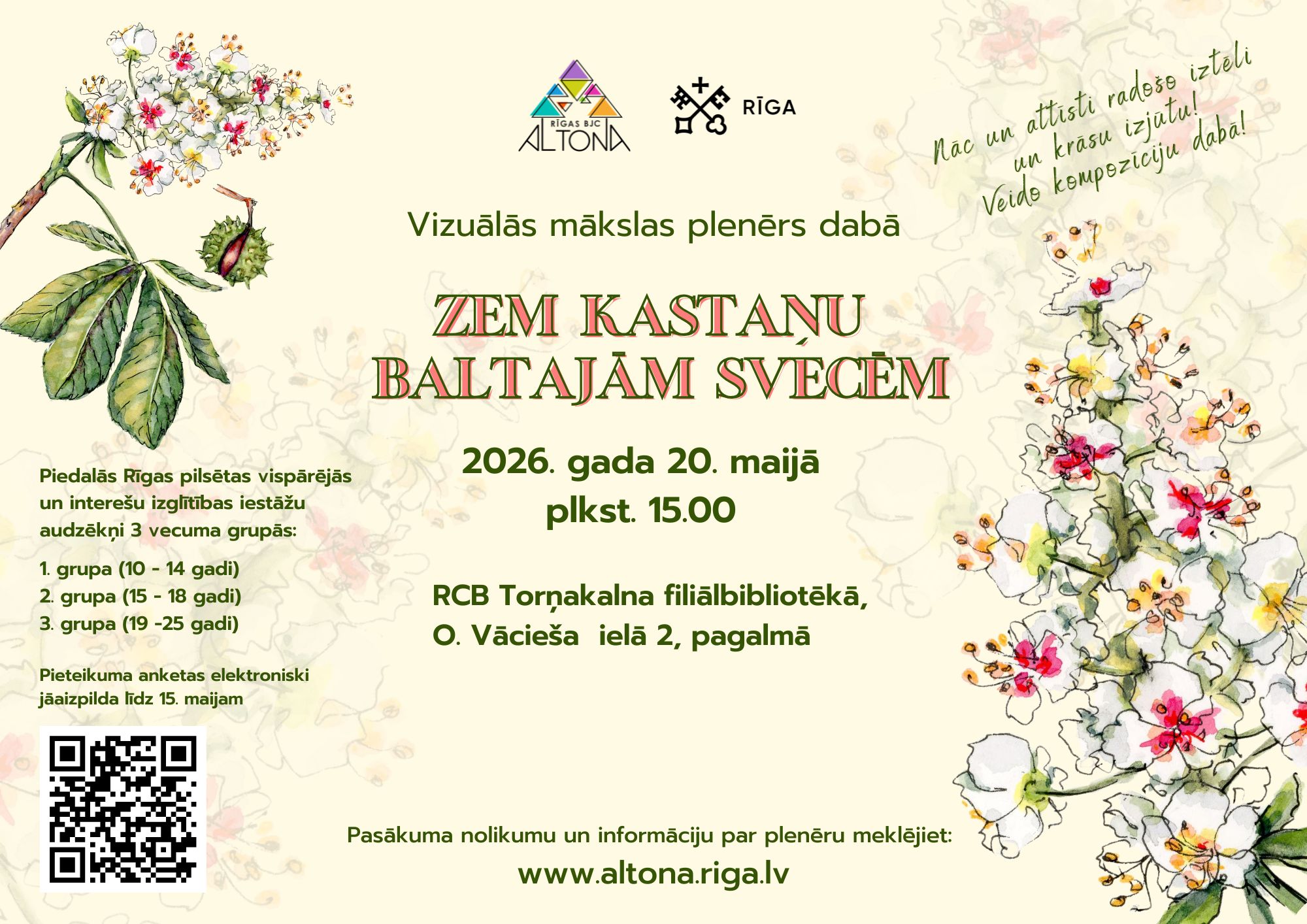 Ir atnācis pavasaris – skaistais ziedēšanas laiks! Mēs atkal tiksimies mākslā – Vizuālās mākslas plenērā “Zem kastaņu baltajām svecēm”.